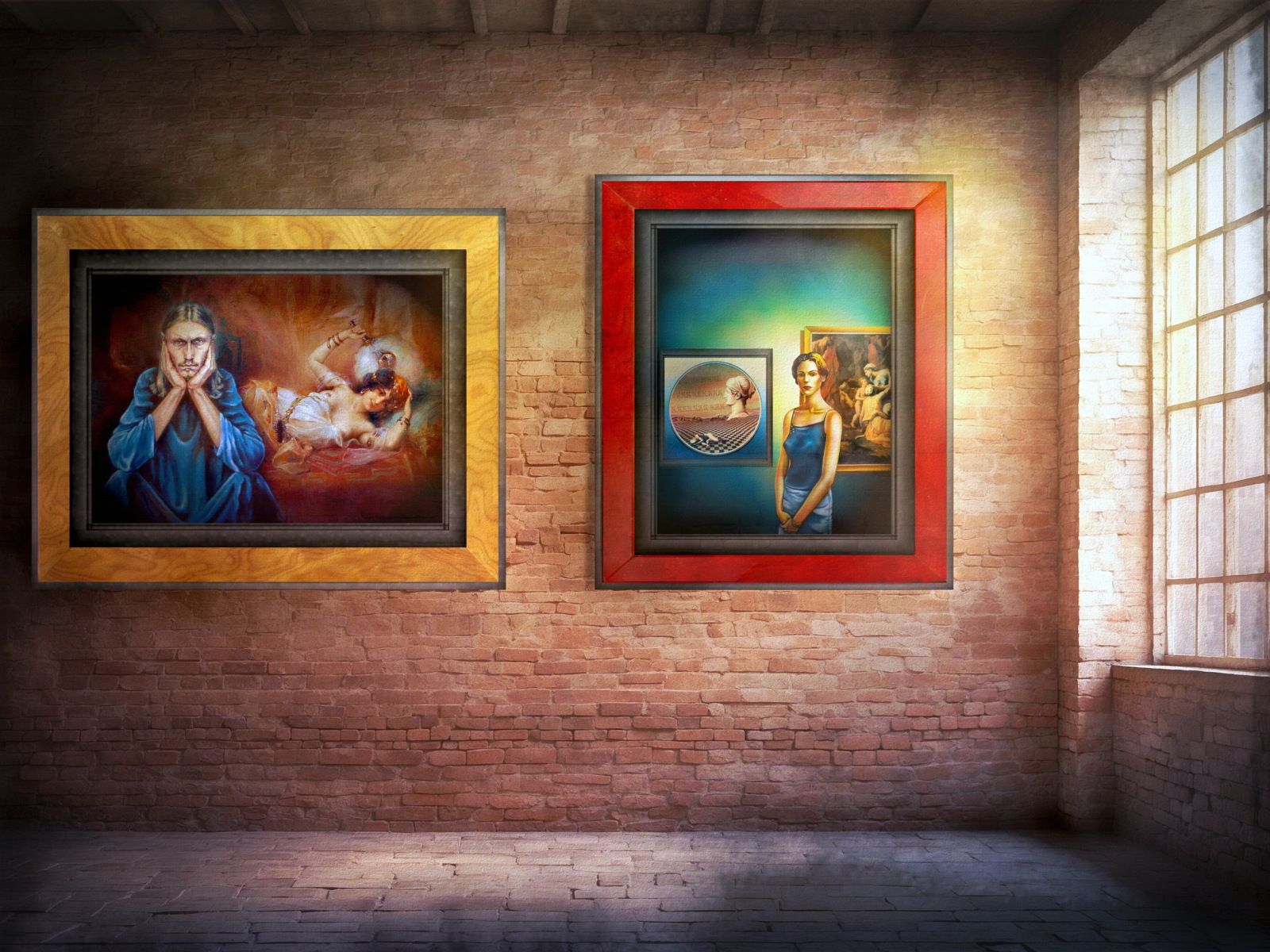 Étude-perspective : Une série de peintures jouant sur les lignes, les volumes et les corps, avec une approche académique et une touche surréaliste.