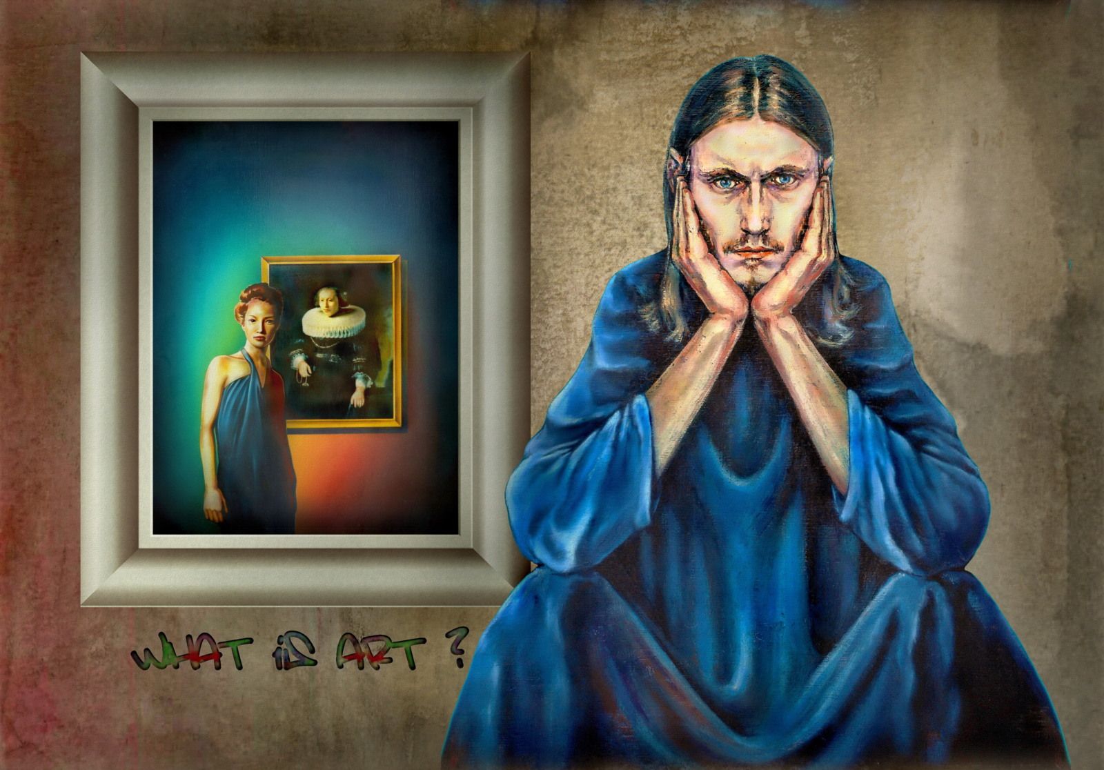 Style artistique : Son travail va du surréalisme à la peinture académique, avec une préférence affirmée pour le figuratif. Il aime jouer avec les références historiques et les codes classiques pour créer des œuvres à la fois familières et provocantes.